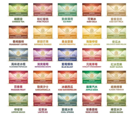 | 口味 | 檸檬草, 拉菲冰, 靈魂冰泉, 玫香荔枝, 錄豆冰沙, 蘋果汽水, 經典煙草, 蜜香豆奶, 勁爽沙士, 勁爽薄荷, 鐵觀音, 香純咖啡, 粉紅蜜桃, 紅冰芭樂, 蜜瓜冰, 百香果, 鮮甜芒果, 黃金菠蘿, 海鹽檸檬, 元氣草莓, 冰鎮西瓜, 清爽葡萄, 風味老冰棍 |