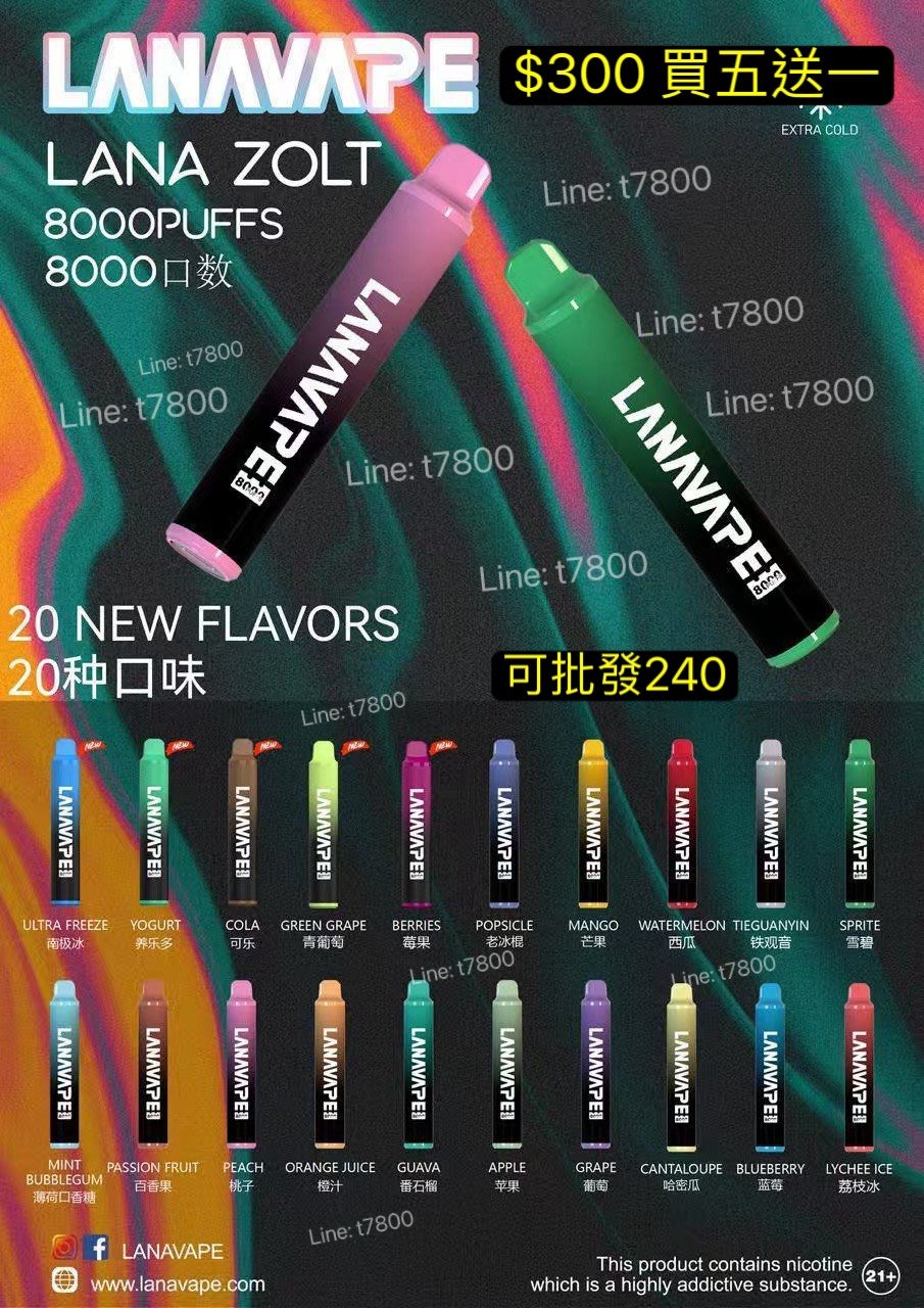 每支Lana Zolt 8000 PUFFS煙油倉可容納高達 15ml 的油,可提供多達 8000 次的吸入,確保持久的使用體驗,無需頻繁添加油,方便實用。內置 850mAh 的純鈷電池提供強勁動力,讓 Lana 電子能夠提供持久續航,讓您無需擔心電量問題,持續享受吸樂趣。提供多款口味選擇,從清新的薄荷到豐富的水果,讓你的每一次吸入都充滿驚喜。