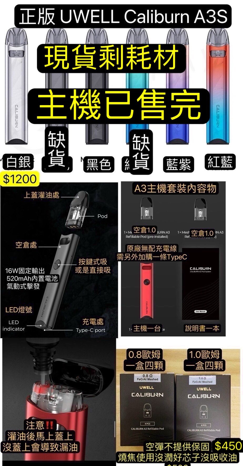 UWELL Caliburn A3S 咖哩棒 A3S POD 主機咖哩棒A3空彈咖哩棒A3耗材0.8空彈咖哩A3主機A3S空彈