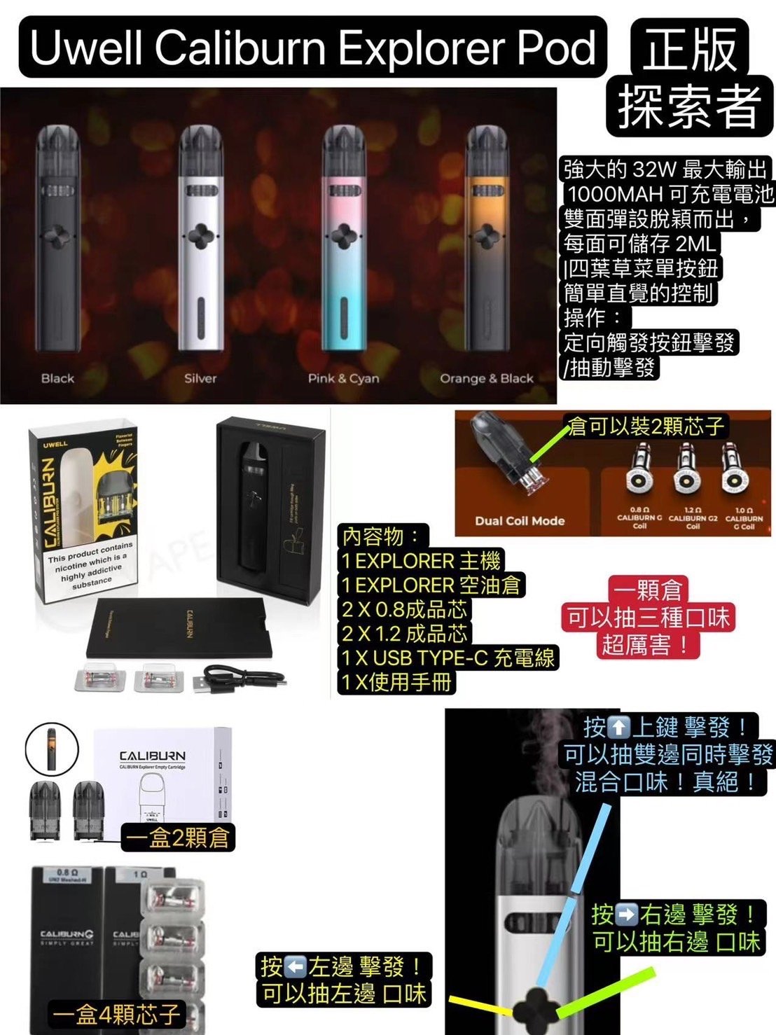 Uwell Caliburn Explorer Pod 探索者 — 創新雙味體驗,強勁輸出!