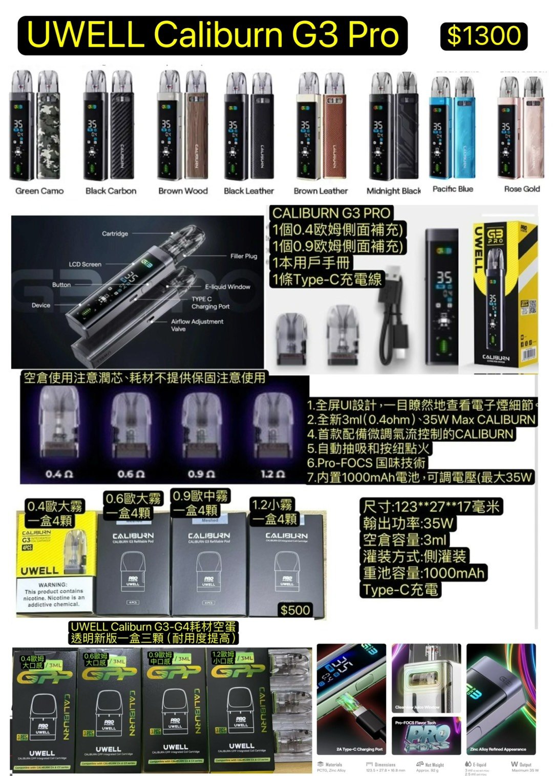 UWELL Caliburn G3 Pro Pod咖哩棒G3PRO主機咖哩G3三代主機咖哩棒G3空彈G3PRO耗材G3PRO空彈